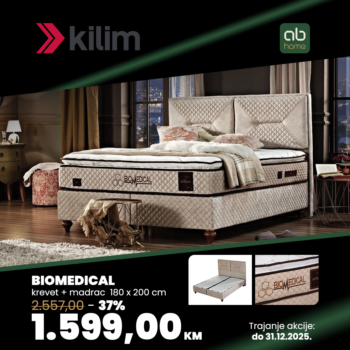 Biomedical madrac podržava ritam vašeg tijela tokom spavanja. Ublažava stres nakupljen tokom dana, opušta mišiće i smiruje vaš um. Sistem džepnih opruga s pet zona, potporna pjena i 12-slojna struktura nude čvrstoću prilagođenu kičmi.