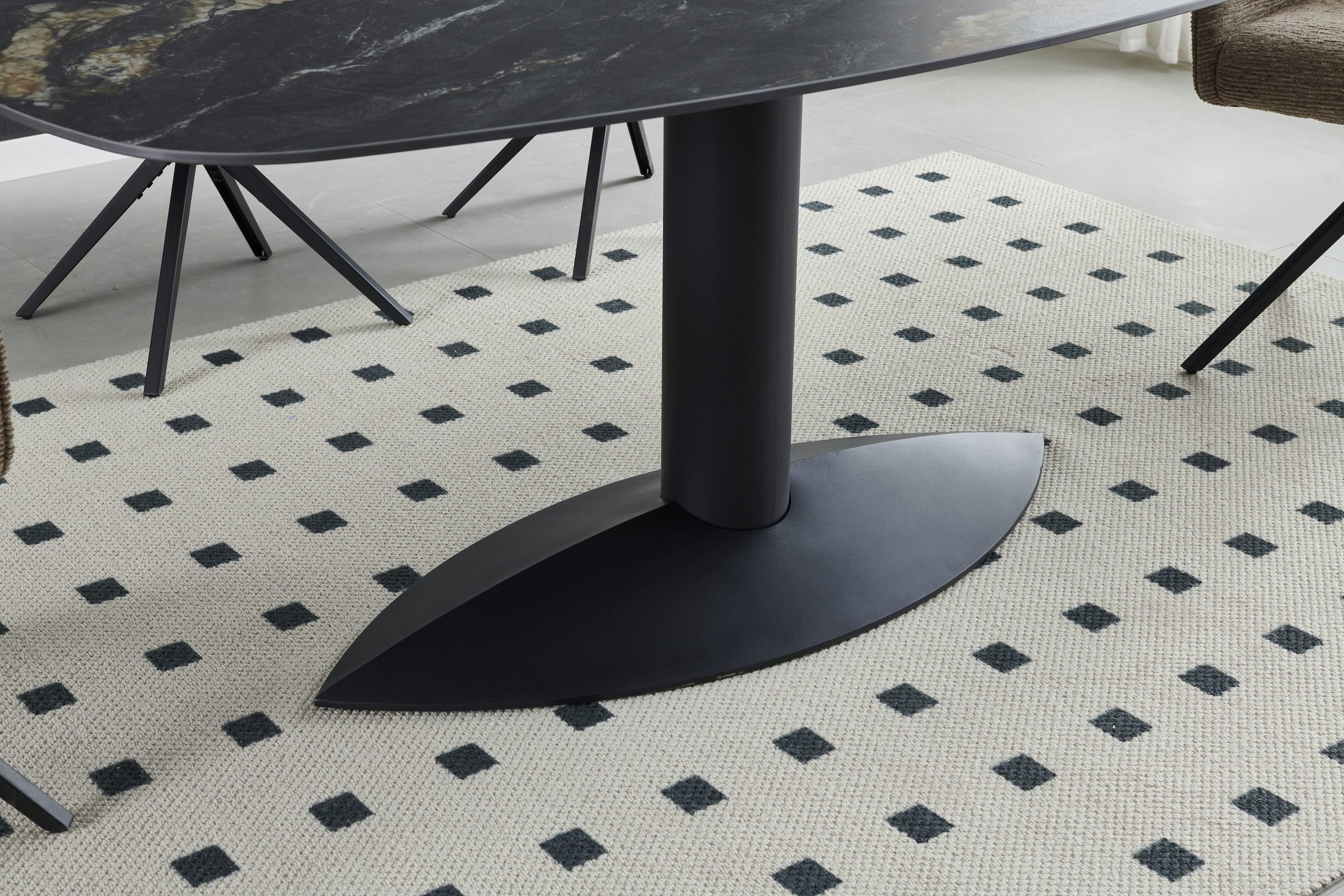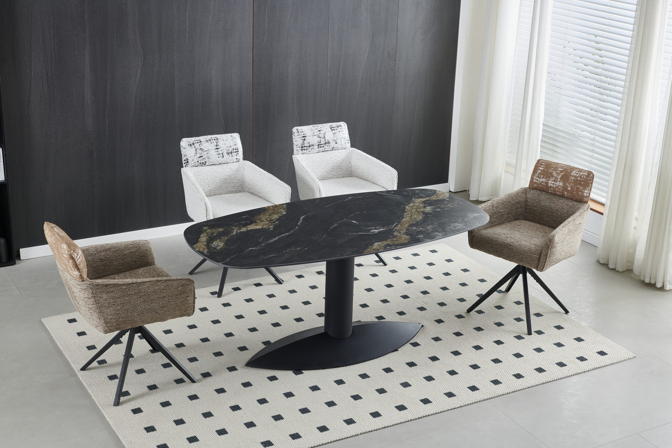 Linea trpezarijski stol ima ploču od Black Gold Sand Matte sinteriranog kamena debljine 11 mm, koja pruža sofisticirani i elegantan izgled.