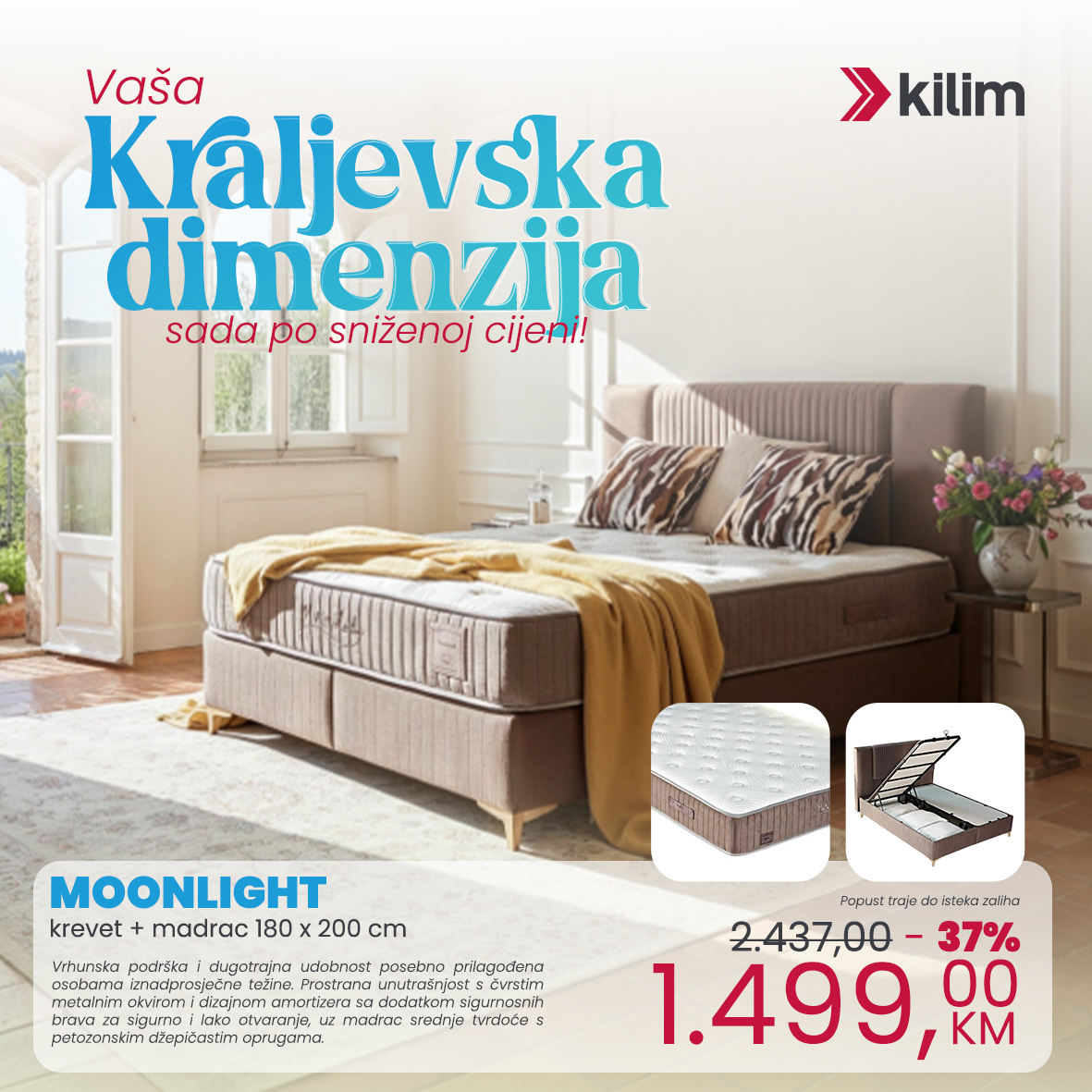 Moonlight krevet, sa svojom prostranom unutrašnjošću, nudi dovoljno prostora za pohranu vaših stvari. Izdržljiv metalni okvir otporan na hrđu, dizajn s amortizerom koji omogućava lako otvaranje čak i s madracem i sigurnosne brave koje sprječavaju ponovno zatvaranje osiguravaju sigurnu upotrebu. Tkanina koja se lako čisti, koja nadopunjuje uzglavlje i madrac, pruža elegantan i čist ambijent.