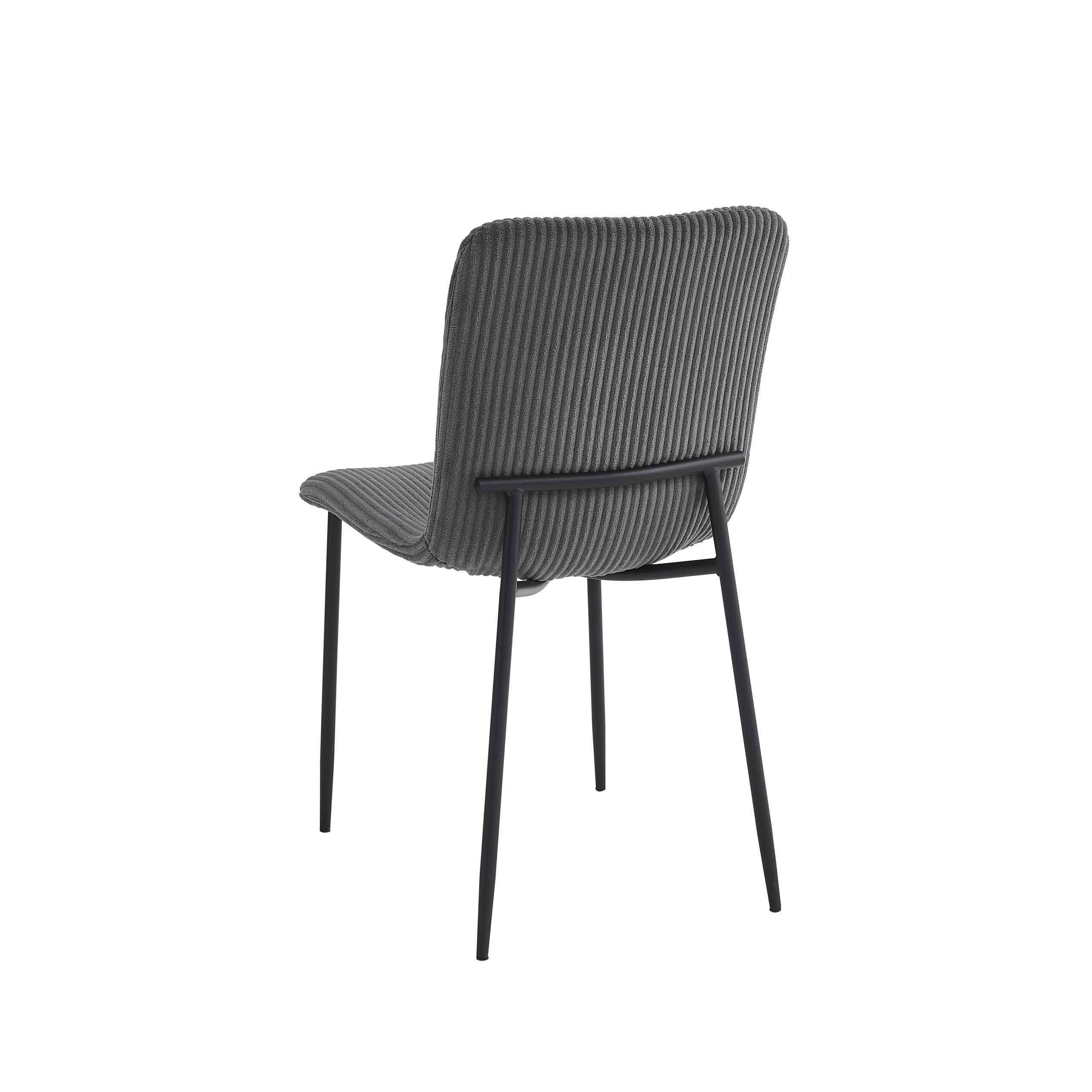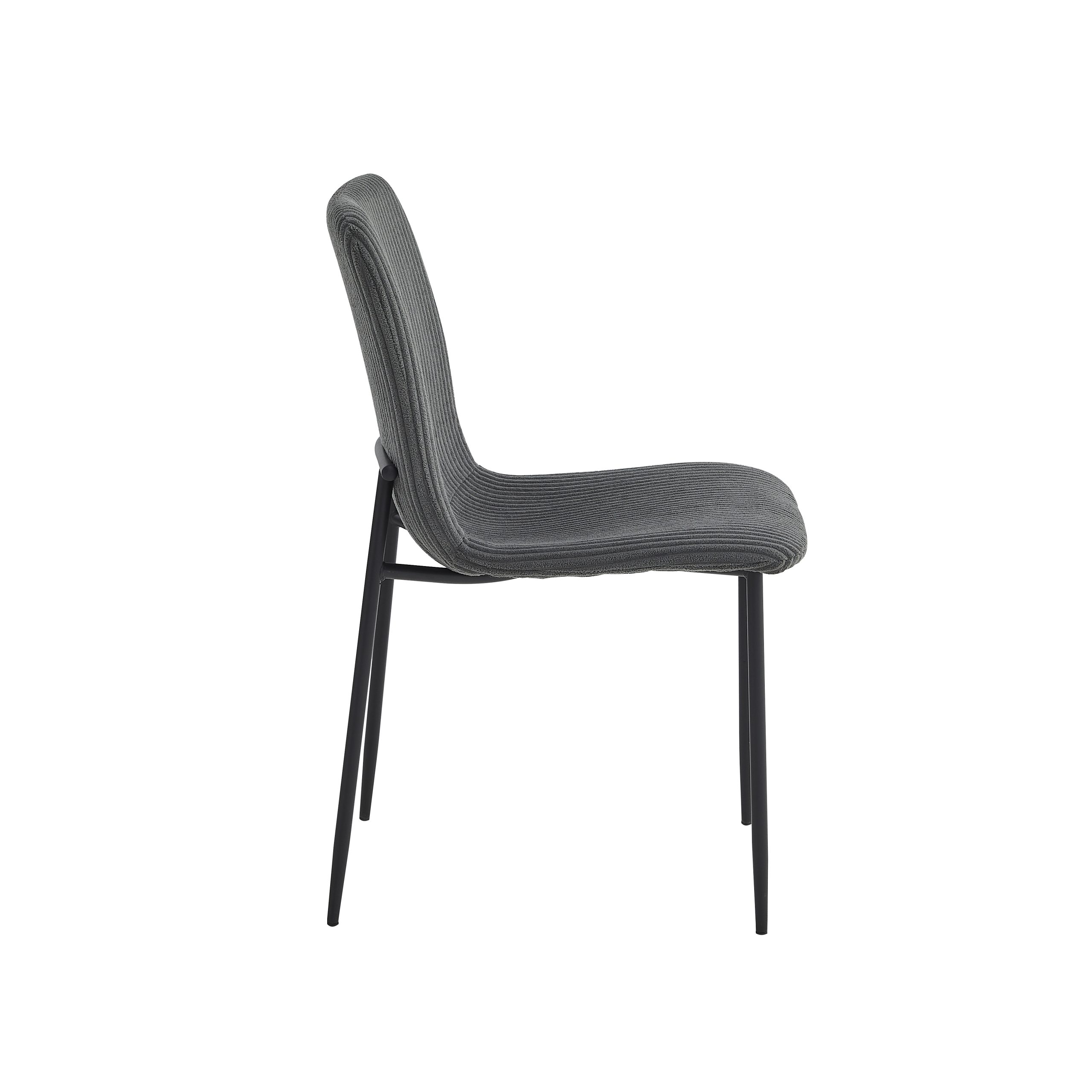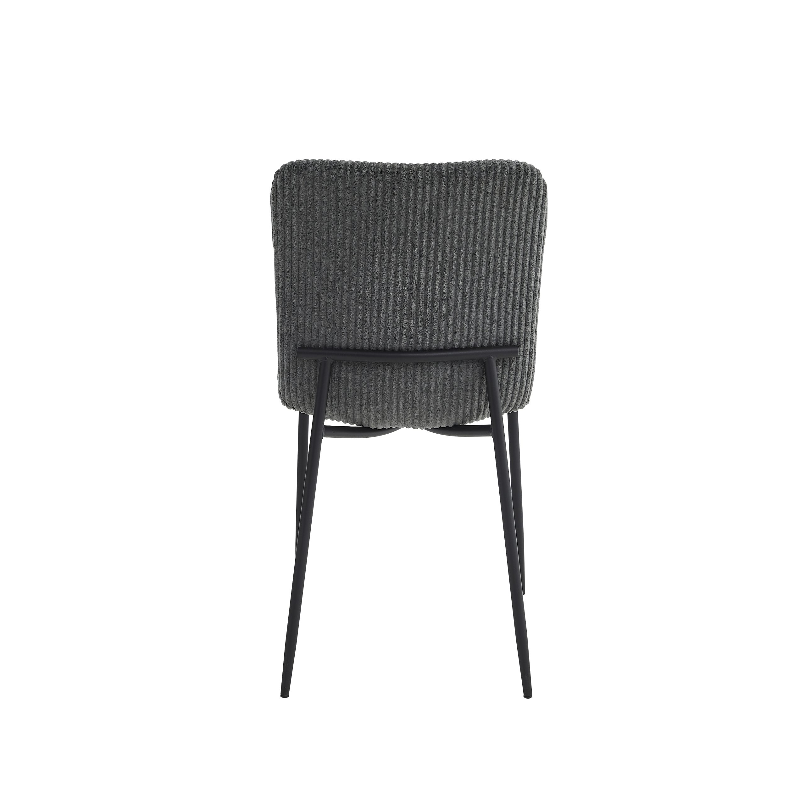 Sjedište i naslon su presvučeni visokokvalitetnom tkaninom, sa pažljivo izvedenim šavovima koji dodatno naglašavaju njen moderan izgled. Noge stolice su izrađene od čelika, sa crnim prah-pokrivkom, što im daje čvrstinu i dugotrajan vizuelni efekat, a dimenzije nogu su 19-14 mm sa debljinom od 1.0 mm.