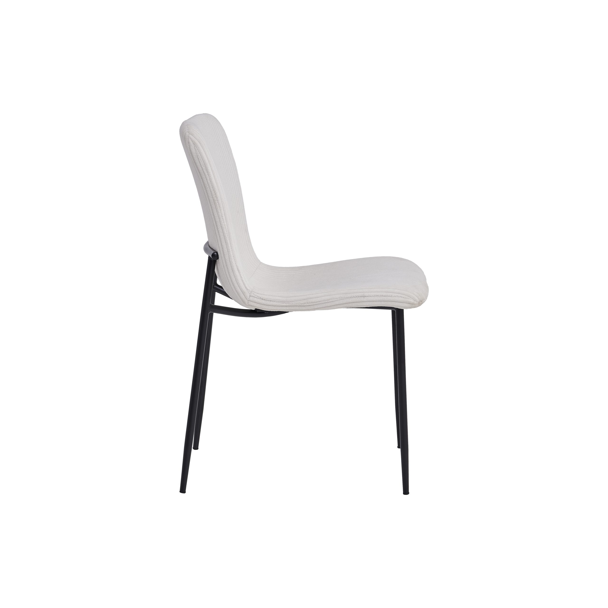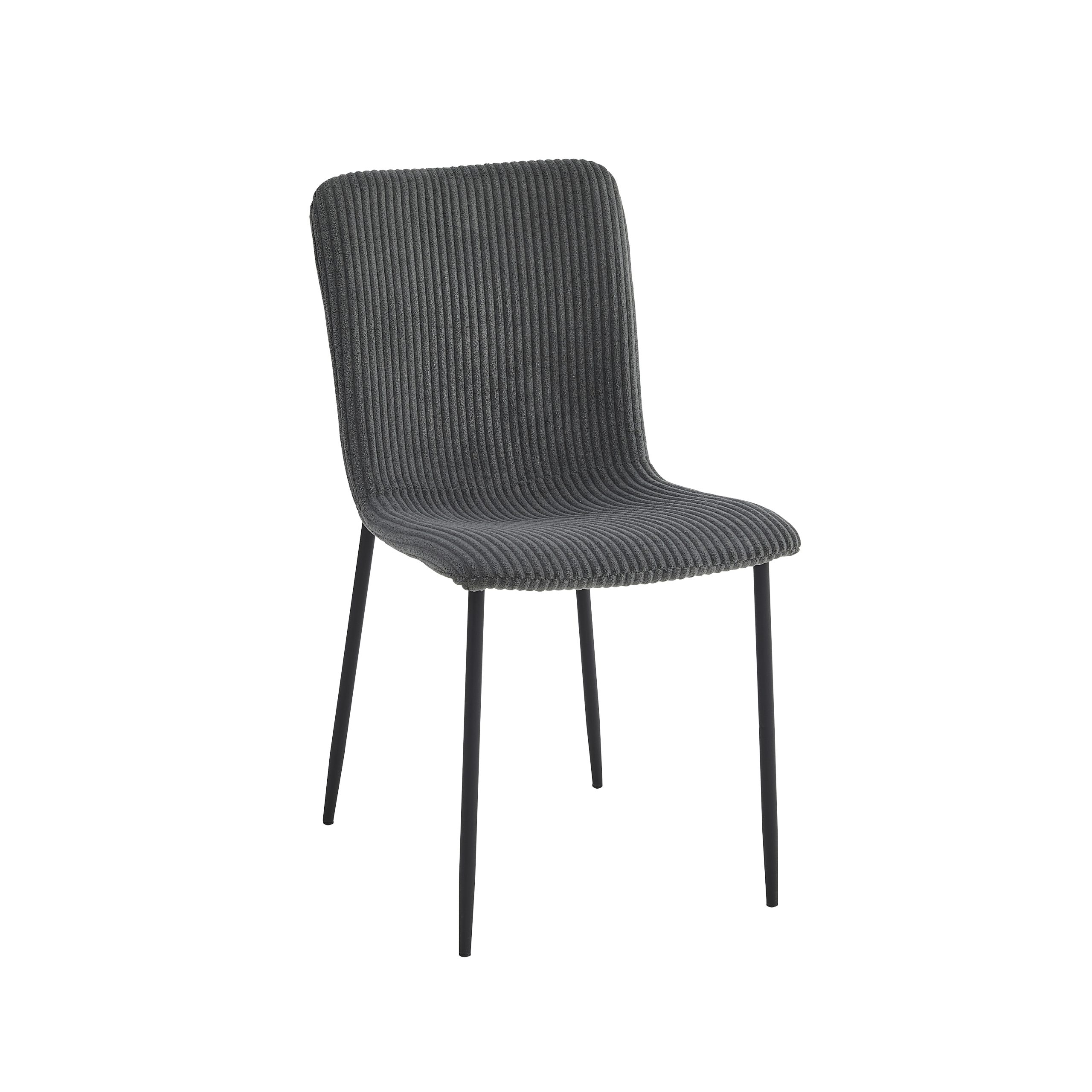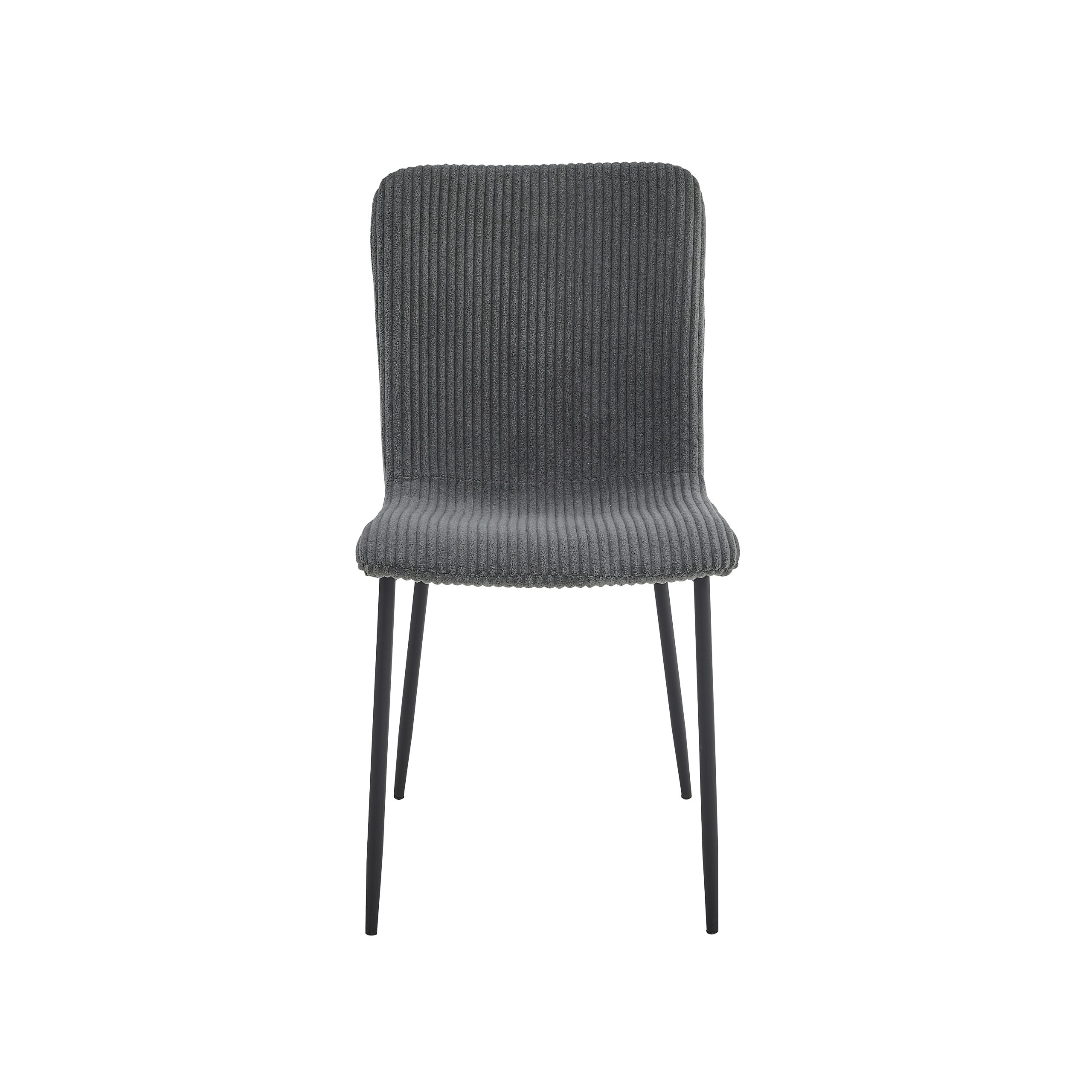 Sjedište i naslon su presvučeni visokokvalitetnom tkaninom, sa pažljivo izvedenim šavovima koji dodatno naglašavaju njen moderan izgled. Noge stolice su izrađene od čelika, sa crnim prah-pokrivkom, što im daje čvrstinu i dugotrajan vizuelni efekat, a dimenzije nogu su 19-14 mm sa debljinom od 1.0 mm.